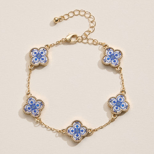 Colorful Shell Charm Bracelet with Gold Detailing: Blue/White / One / 5SB21068